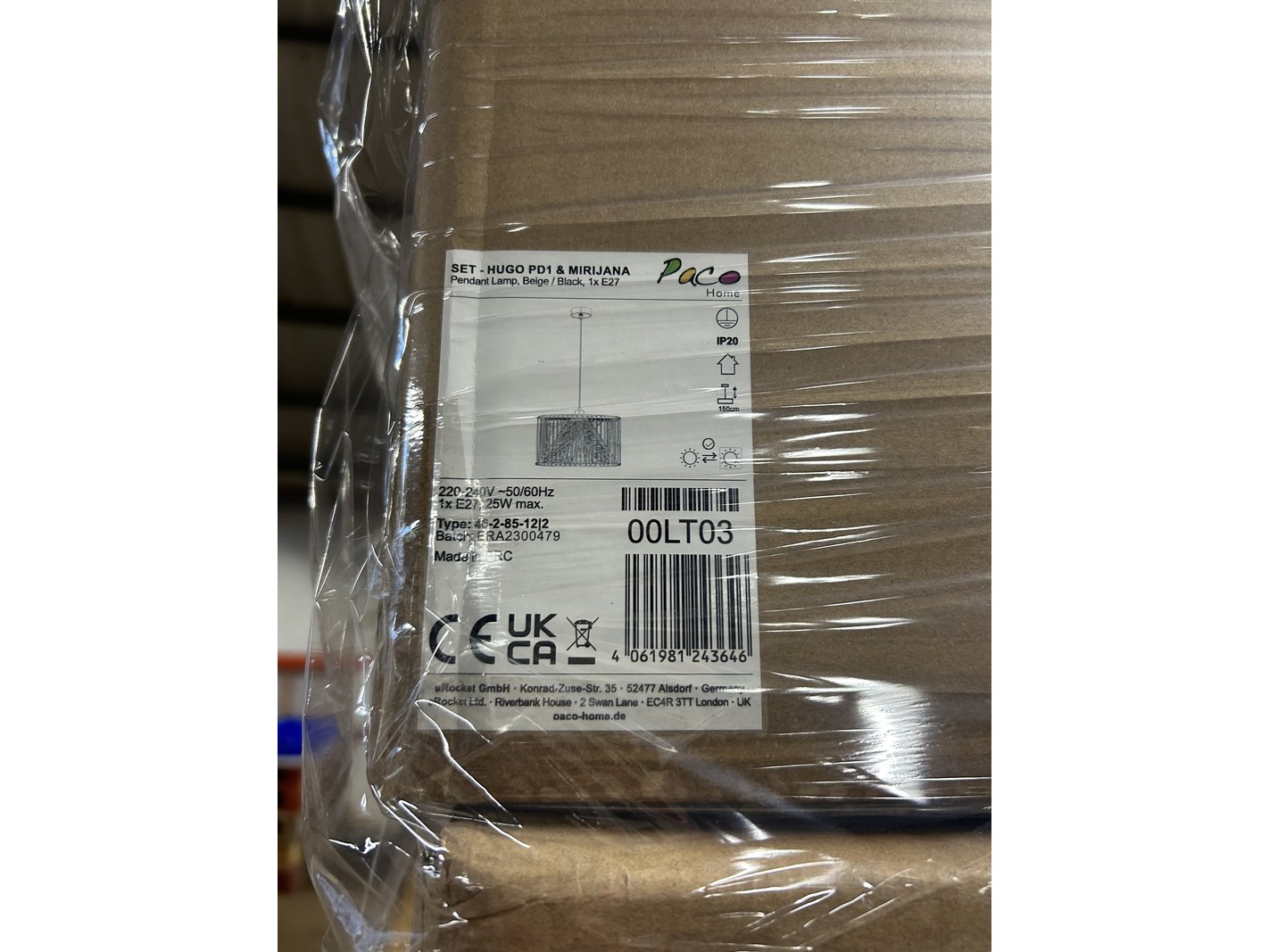 Product: Design verlichting Paco Home – verkrijgbaar op bol.com en Amazon Specificaties: Pallet met design verlichting van Paco Home, rechtstreeks afkomstig uit het fulfilment center. De dozen zijn ongeopend en niet gesorteerd. De inhoud kan bestaan uit nieuwe producten, demo artikelen of items met beschadigingen of ontbrekende onderdelen. Soms gaat het alleen om een beschadigde verpakking, maar het kan ook voorkomen dat het product zelf beschadigd of incompleet is.