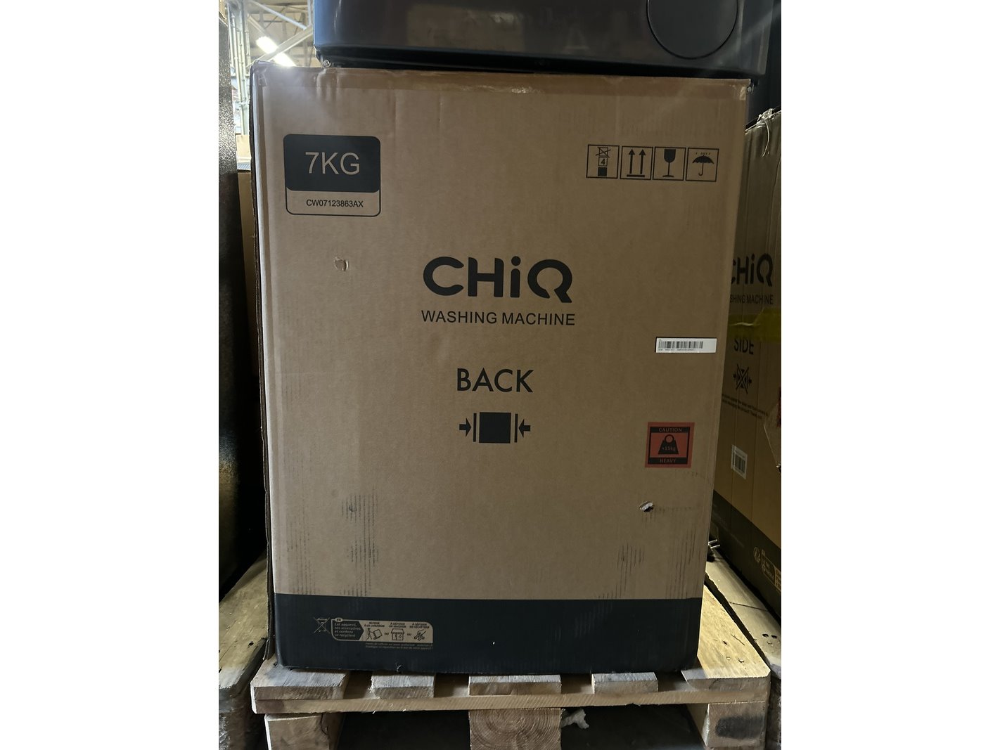 Merk: CHiQ Product: Wasmachine 7 kg AI Smart energieklasse A Afmeting: 600x465x850 mm Specificaties: Demo model.