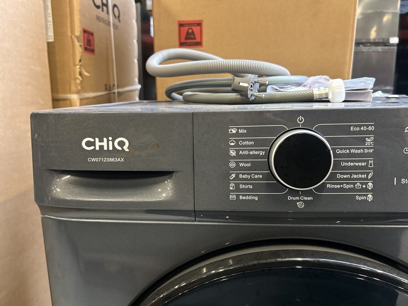 Merk: CHiQ Product: Wasmachine 7 kg AI Smart energieklasse A Afmeting: 600x465x850 mm Specificaties: Demo model. Trommel maakt geluid. Dient nagekeken te worden.