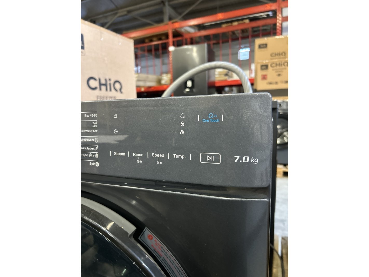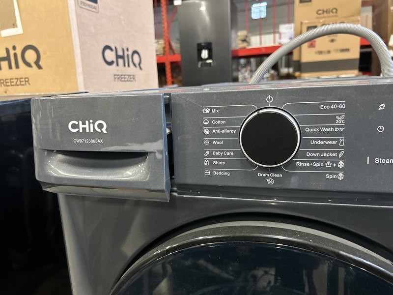 Merk: CHiQ Product: Wasmachine 7 kg AI Smart energieklasse A Afmeting: 600x465x850 mm Conditie: gebruikt