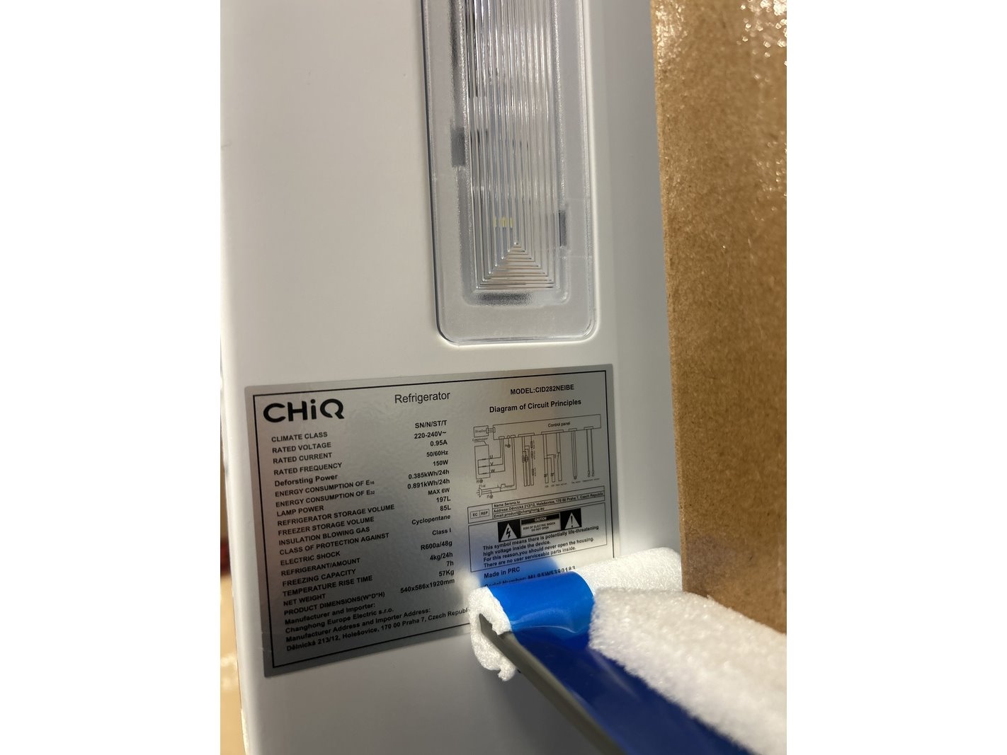 Merk: CHiQ Product: Koel-vriescombinatie 282 liter Afmeting: lxbxh 540x586x1920 mm Specificaties: Showroom model.