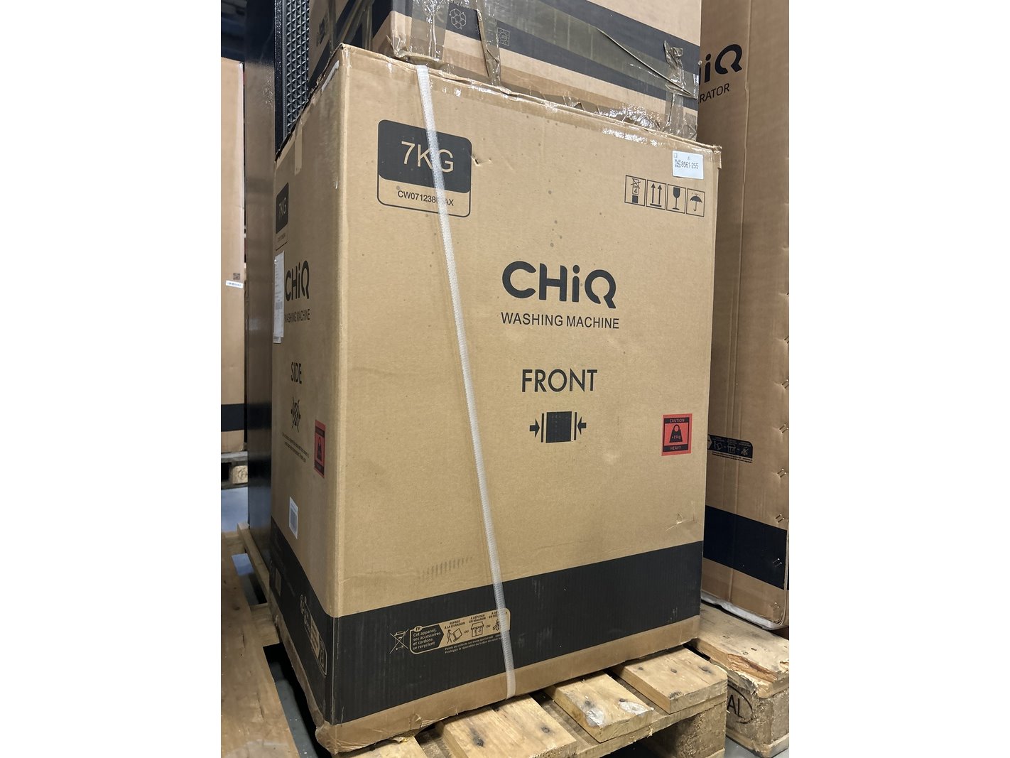 Merk: CHiQ Product: Wasmachine 7 kg AI Smart energieklasse A Afmeting: 600x465x850 mm Conditie: nieuw