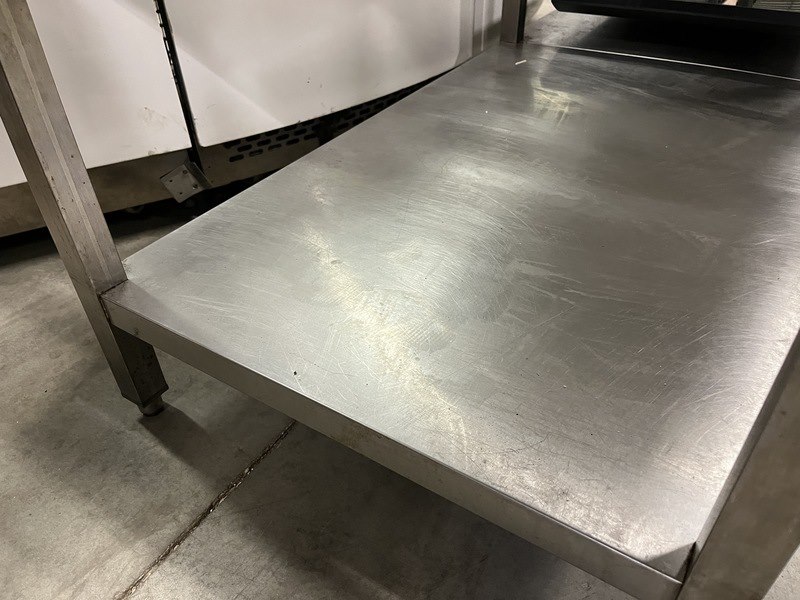 Product: Rvs werktafel 220x70x89 cm Conditie: gebruikt Specificaties: Beschadigd.
