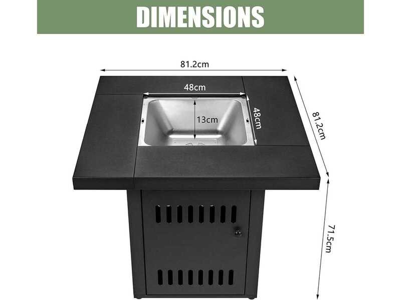 Product: Vuurtafel incl. rooster 81,2x70x81,2 cm Conditie: nieuw Specificaties: Nieuw in doos. Vuurtafel werkt met houtskool en houtskoolbriketten, incl. rooster voor grillen/BBQ, verandert in tuintafel met compleet tafelblad Afmetingen: vuurtafel (b x h x d) ca. 81,2 x 70 x 81,2 cm, grillrooster (l x b) ca. 41 x 41 cm. Materiaal: tafel van staal. Gewicht: ca. 25,2 kg.