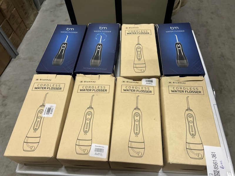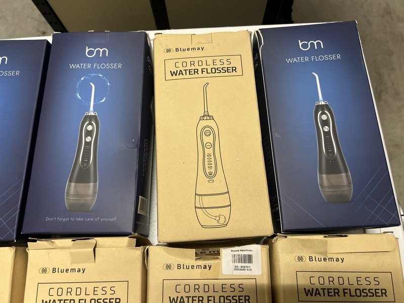 Merk: Bluemay Product: Waterflosser draadloos Specificaties: Nieuw en showroom modellen. Verpakking beschadigd.