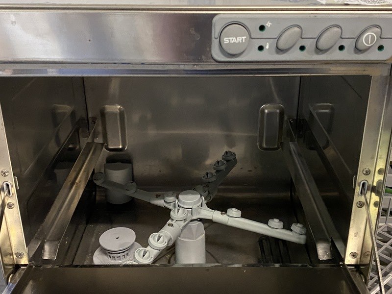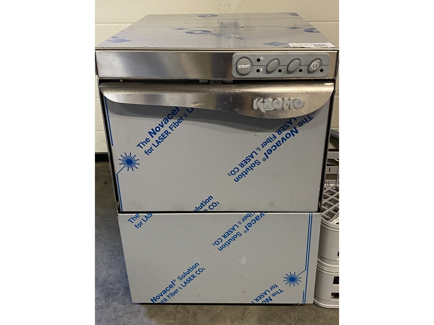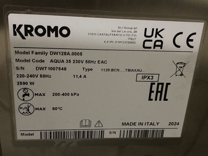 Merk: Kromo Product: Glazenspoeler Conditie: nieuw Specificaties: Glazenspoeler van kromo, Aqua 35 230v, incl. 2 wasmanden en bestekhouder