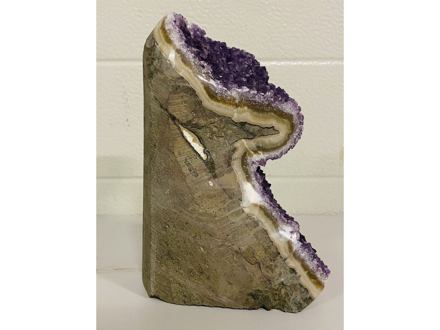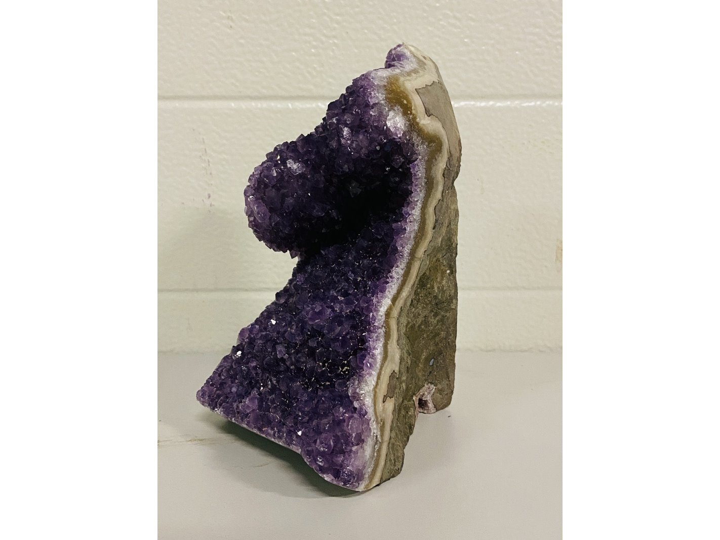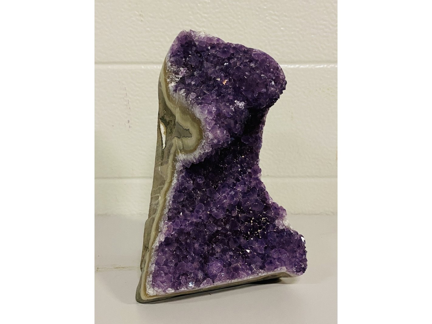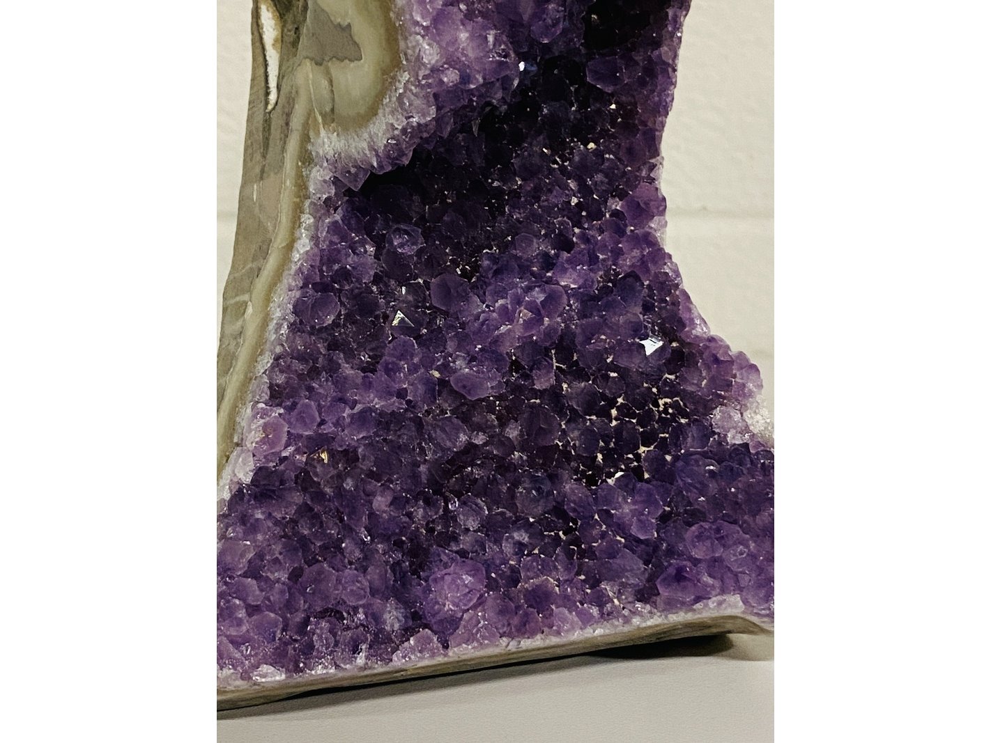 Product: Amethist druse Uruguay A-kwaliteit Kleur: Paars Materiaal: Edelsteen Afmeting: ca 2430 gram; 12 x 12 x 18 cm Conditie: nieuw Specificaties: 1 Amethist druse met gepolijste randen uit Uruguay