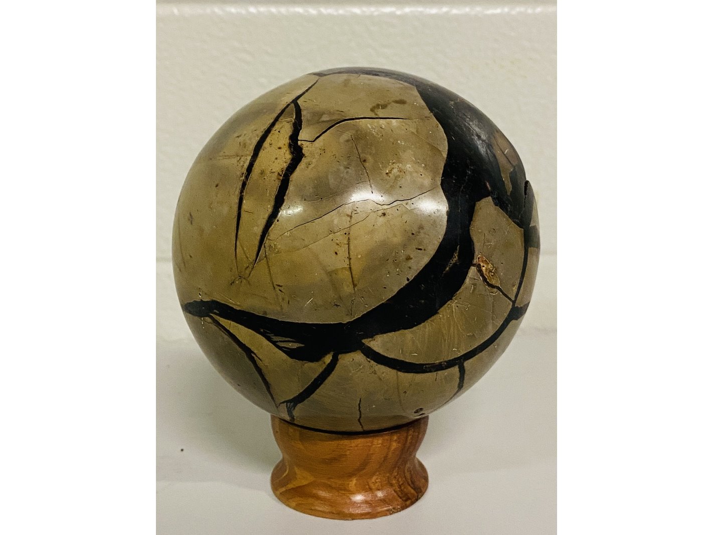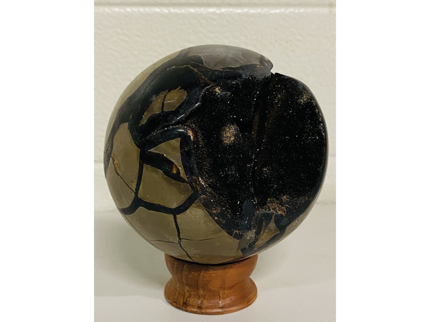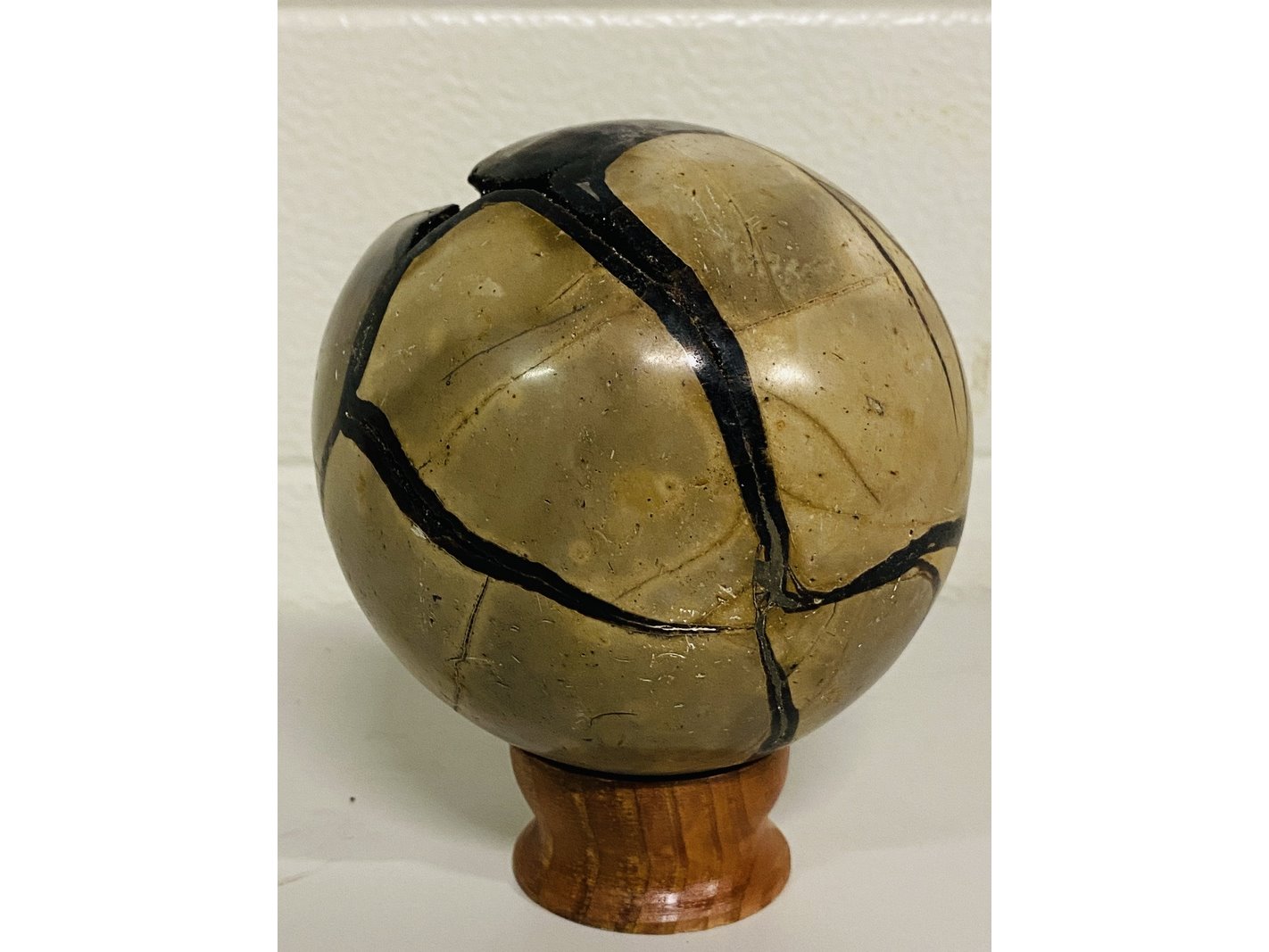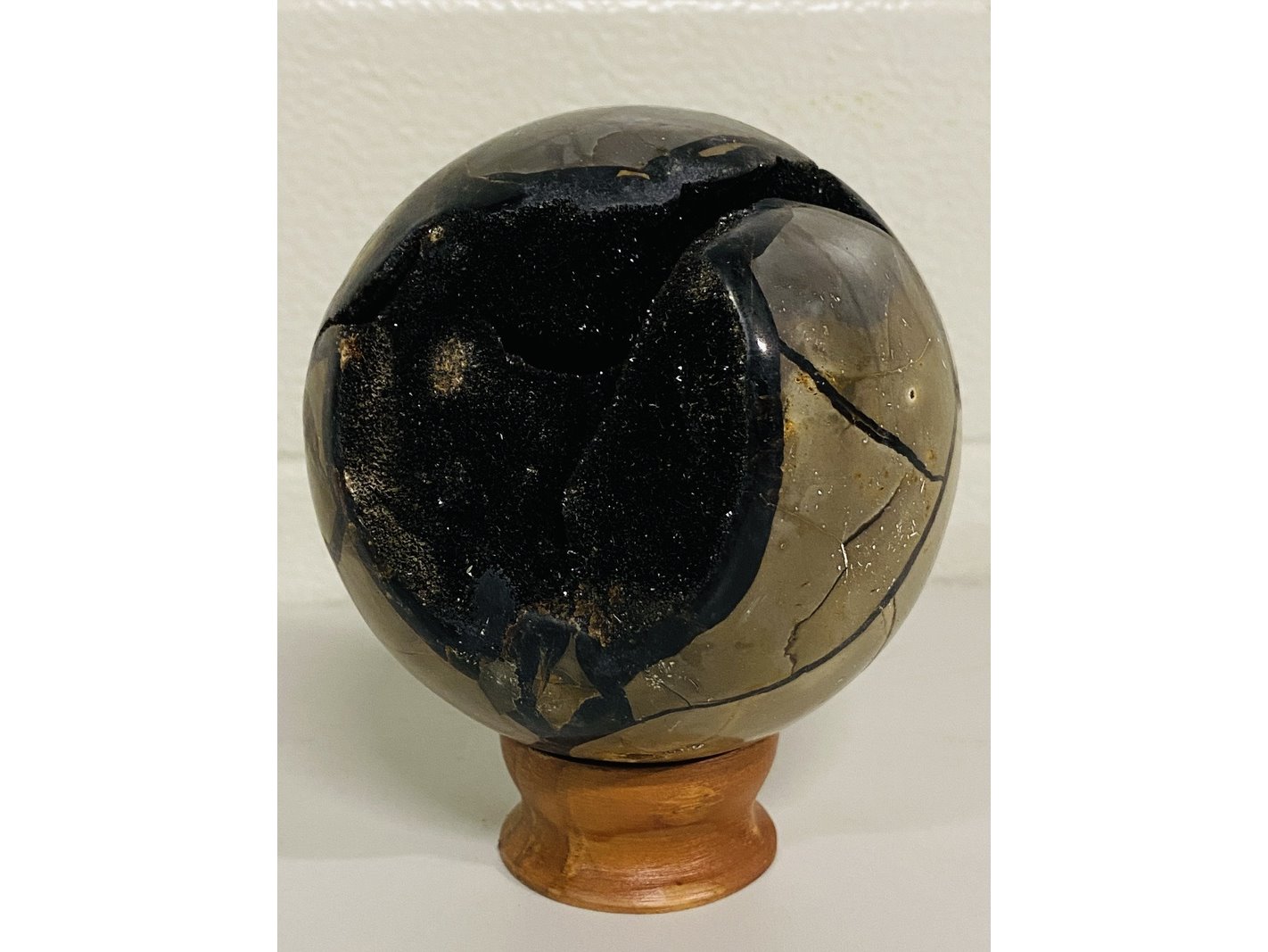 Product: Wilde septarie bol Materiaal: Edelsteen Afmeting: ca 1985 cm; 11,4cm doorsnee Conditie: nieuw Specificaties: 1 Wilde septarie van ca. 11,4cm diameter. Komt uit Madagaskar