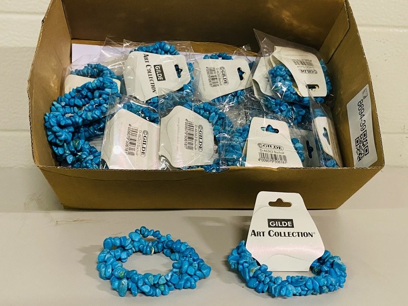 Merk: Gilde Product: Magnesiet armband Materiaal: Edelsteen Conditie: nieuw Specificaties: 25 Magnesiet armbanden met dubbele strengen.