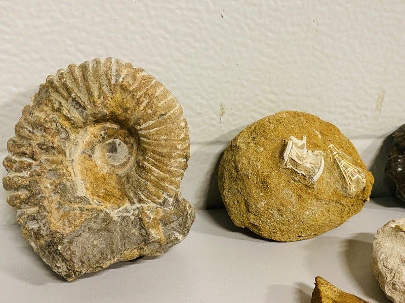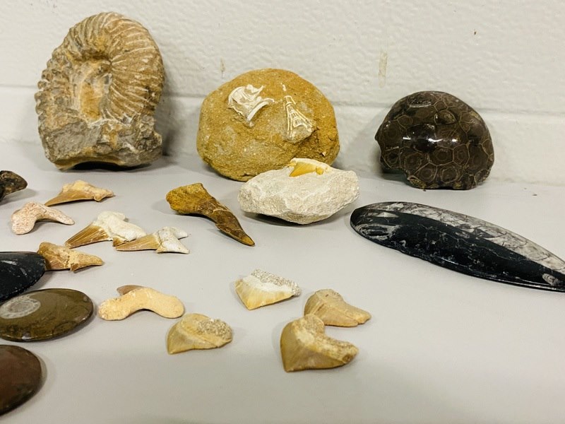 Product: diverse fossielen Materiaal: Fossiel Conditie: nieuw Specificaties: Ammoniet, Zeilvis, Koraal, Trilobiet, Haai, Orthoceras, Corax
