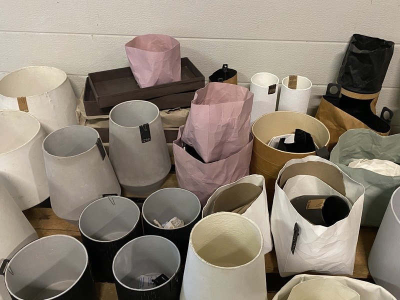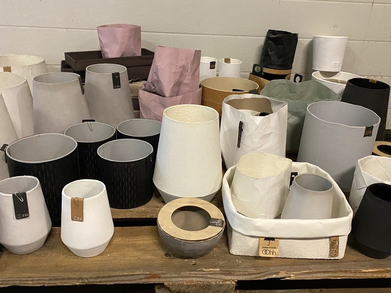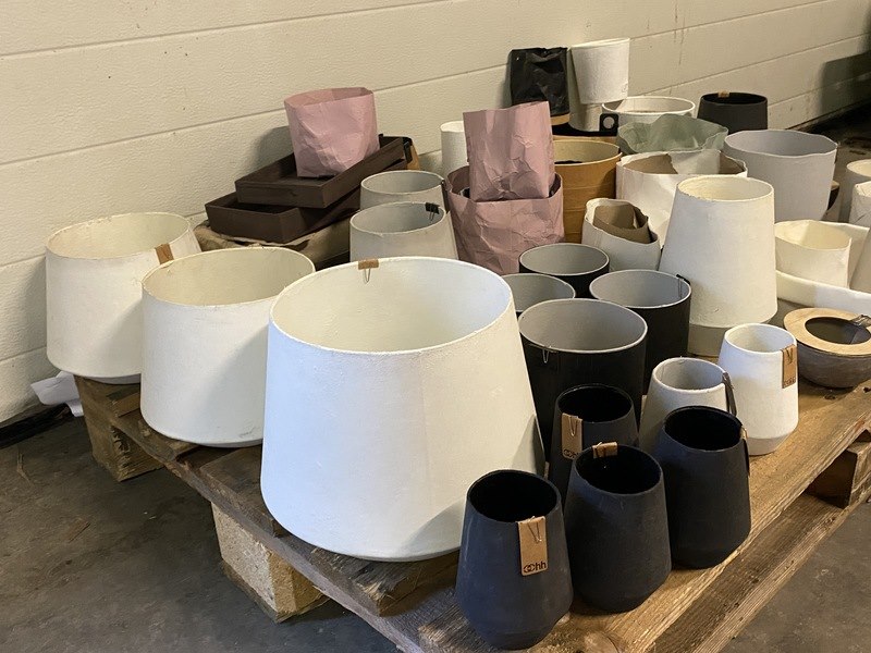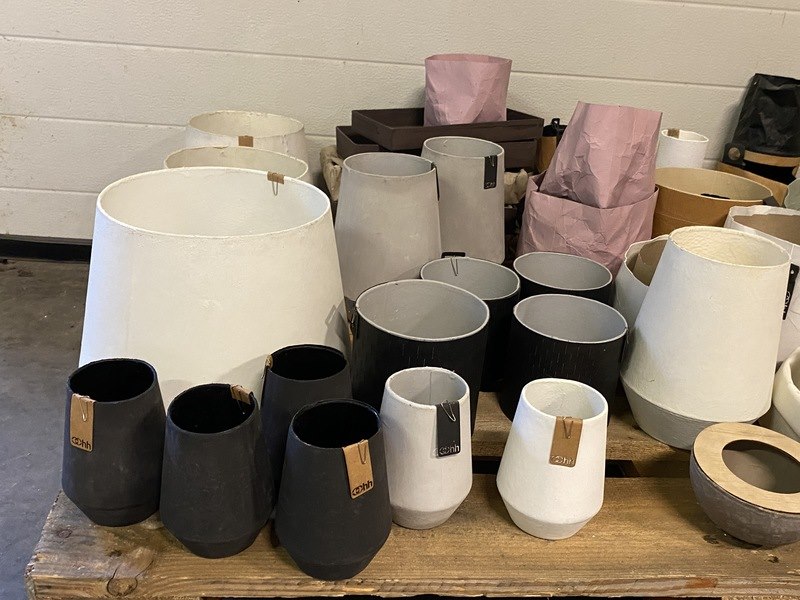 Product: Partij diverse decoratie vazen Conditie: nieuw Specificaties: Grote diversiteit aan OOHH decoratie vazen en potten, zie foto's voor details. de OOhh Collectie is een tijdloos Scandinavisch ontwerp van Susanne Frost Lübech, voor het eerst geïntroduceerd in 2016. Elke vaas is handgemaakt van 100% gerecycled papier en aan de binnenkant gevoerd met natuurlijke latex, waardoor hij volledig waterdicht is.