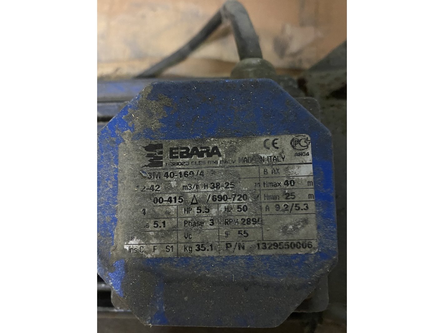 Product: Ebara normaal zuigende centrifugaalpomp Conditie: gebruikt Specificaties: Ebara normaal zuigende centrifugaalpomp, rvs, 3M 40-160/4.0, 4 kW, 230/400 V, zie foto's voor details