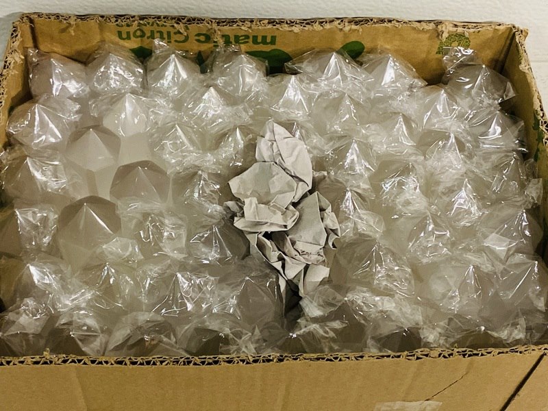 Product: Seleniet obelisken 10cm Materiaal: Edelsteen Afmeting: ca 10 cm hoog Conditie: nieuw Specificaties: 1 volle doos met 100 Seleniet obelisken van 10cm hoog