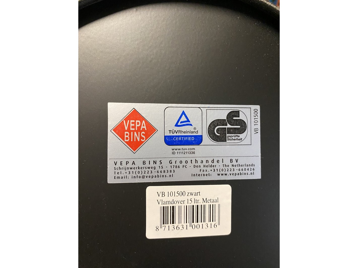 Product: Vlam dovende afvalbakken 15 liter rond Conditie: gebruikt Specificaties: Vlam dovende afvalbakken 15 liter, gebruikt maar in goede staat