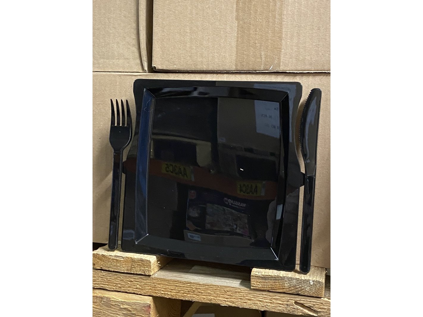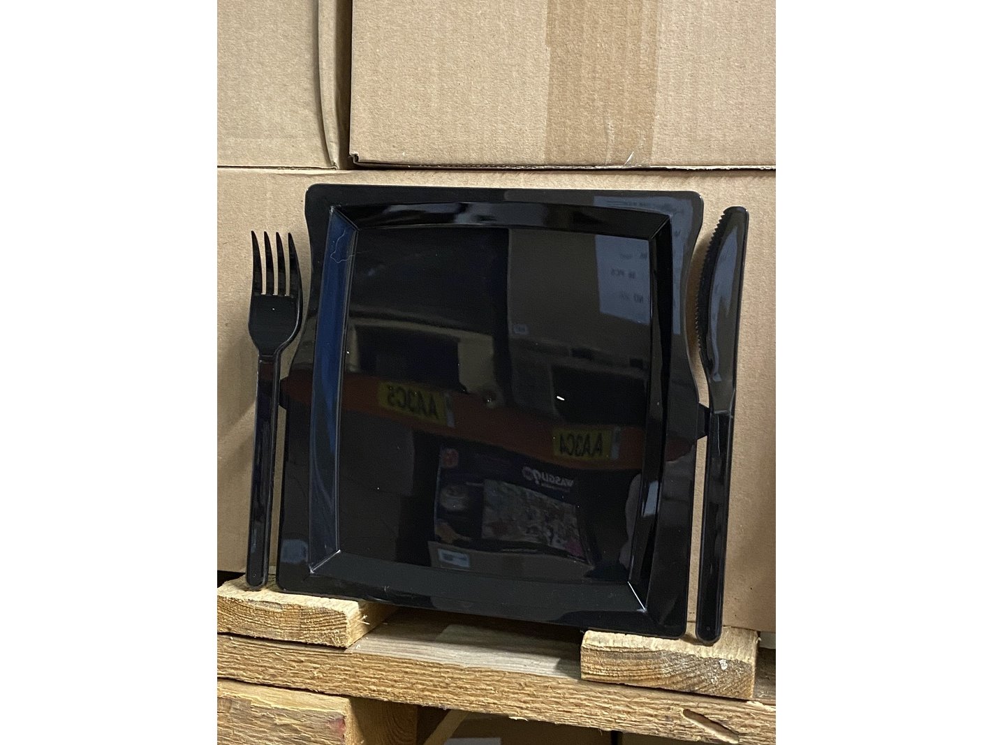 Product: luxe party evenementborden met bestek Kleur: zwart Afmeting: 30x20xcm Conditie: nieuw Specificaties: 9 dozen a 110 stuks De innovatieve feestborden met geïntegreerd bestek zijn ideaal voor uw horeca-evenement!,