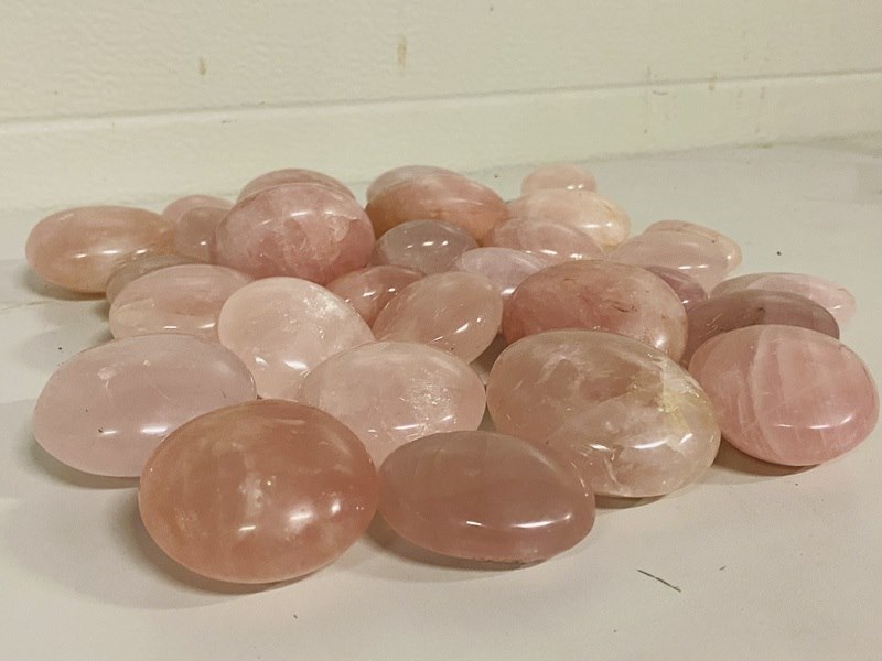 Product: Rozenkwarts handsteen Kleur: Roze Materiaal: Edelsteen Afmeting: ca 2765 gram, ca 4 - 6 cm Conditie: nieuw Specificaties: 30 handstenen Rozenkwarts uit Madagaskar. Gewicht 2765 gram, ca 4 - 6 cm lengte