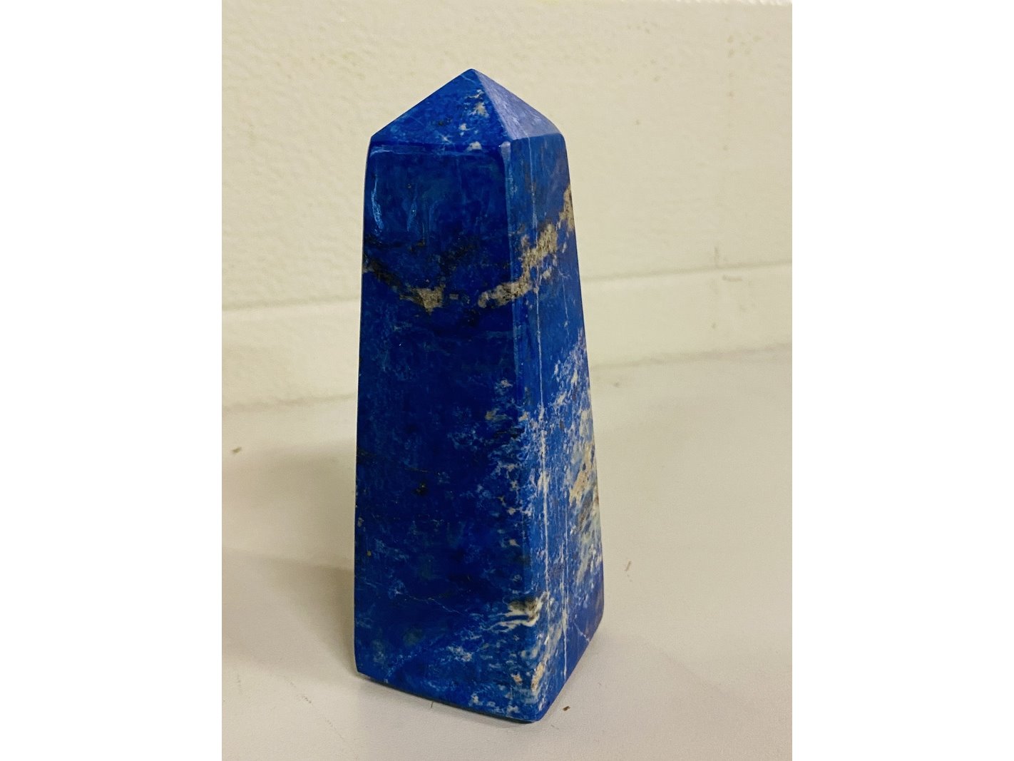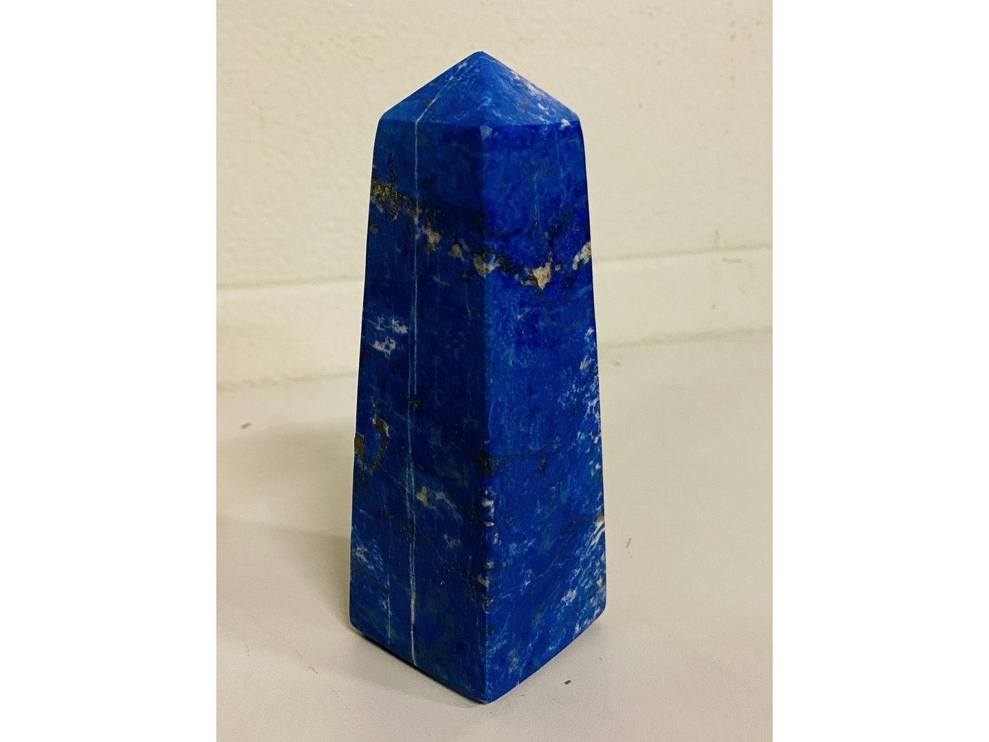 Product: Lapis Lazuli obelisk Materiaal: Edelsteen Afmeting: ca 574 gram, 4,2 x 4,3 x 13,4 cm Conditie: nieuw Specificaties: 1 obelisk van Lapis Lazuli in houten kistje. Komt uit Afghanistan