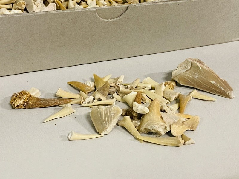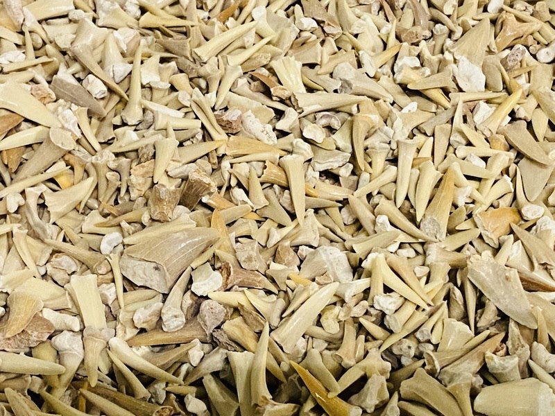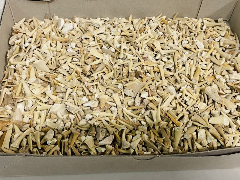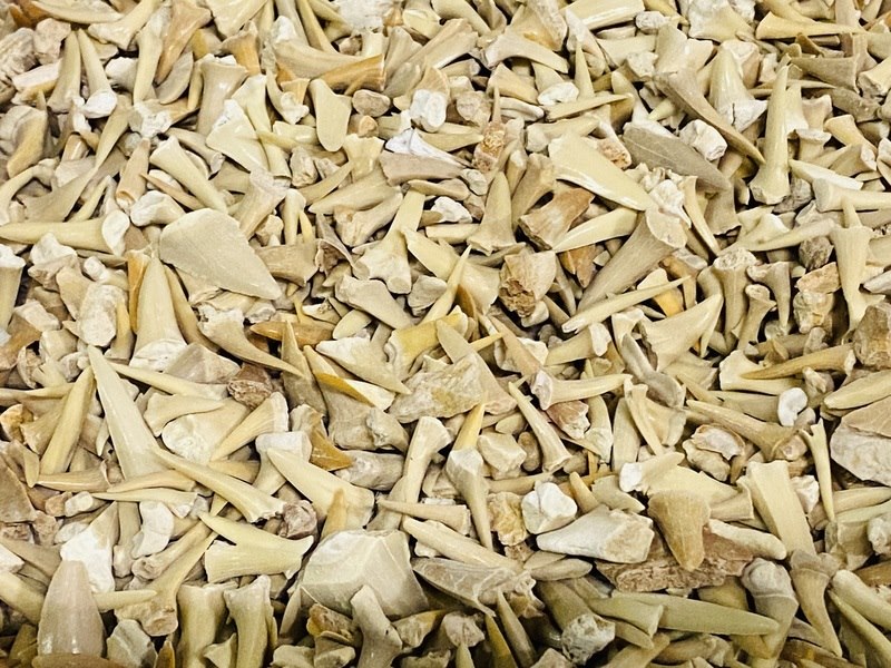 Product: Kilo Haaientanden ongesorteerd Materiaal: Fossiel Afmeting: ca 2020 gram; Conditie: nieuw Specificaties: ca. 2000 gram ongesorteerde Haaientanden uit Marokko