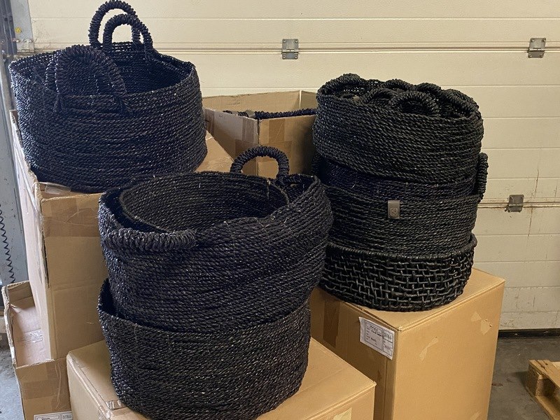 Ca. 65x diverse afmetingen handgemaakte manden