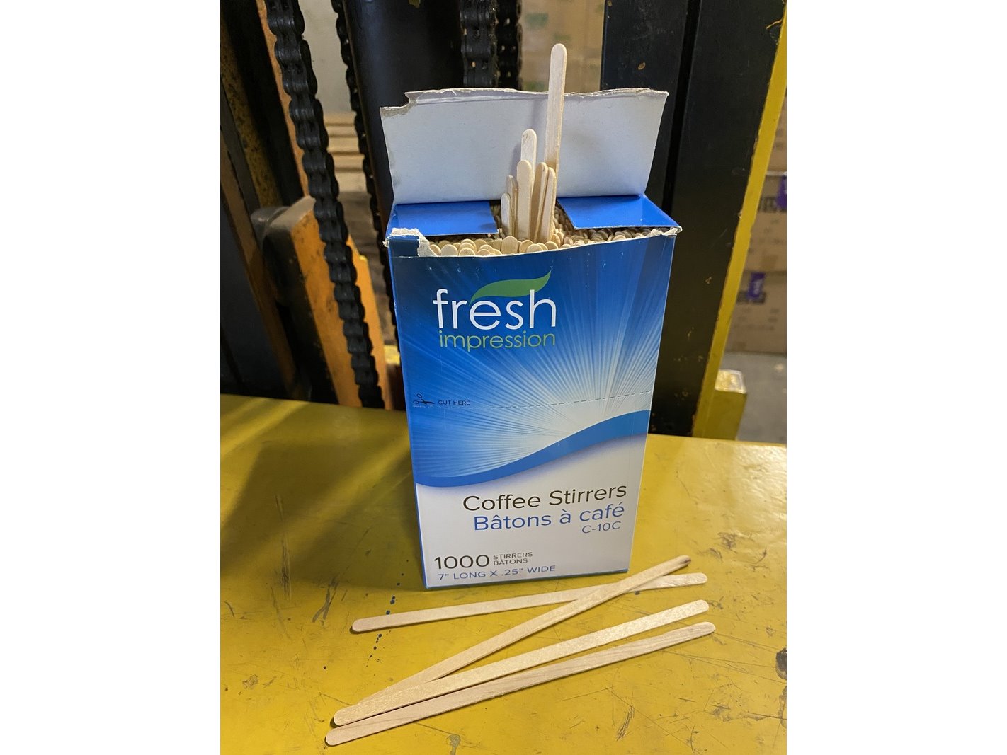 Product: Doosjes a 1000 stuks roerstaafjes Kleur: bruin Conditie: nieuw Specificaties: 5 dozen a 10 doosjes a 1000 stuks roerstaafjes, ideaal voor Catering, kantine en horeca doeleinden.