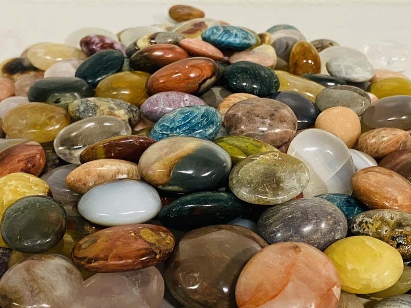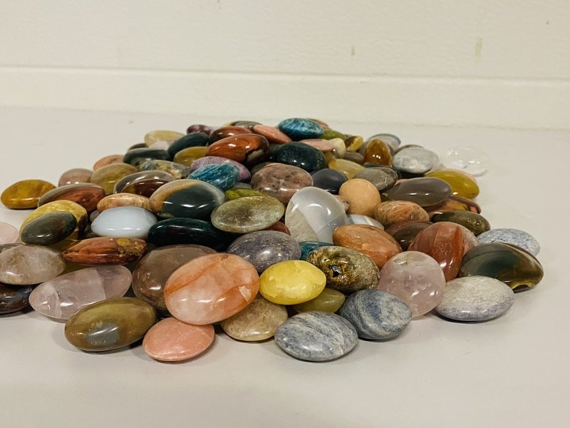 Product: Handstenen mini gemixt Materiaal: Edelsteen Afmeting: ca 2561 gram, ~3-4 cm lang Conditie: nieuw Specificaties: O.a. Apatiet, Bergkristal, Maansteen, Rozenkwarts, Lepidoliet, Rhodoniet