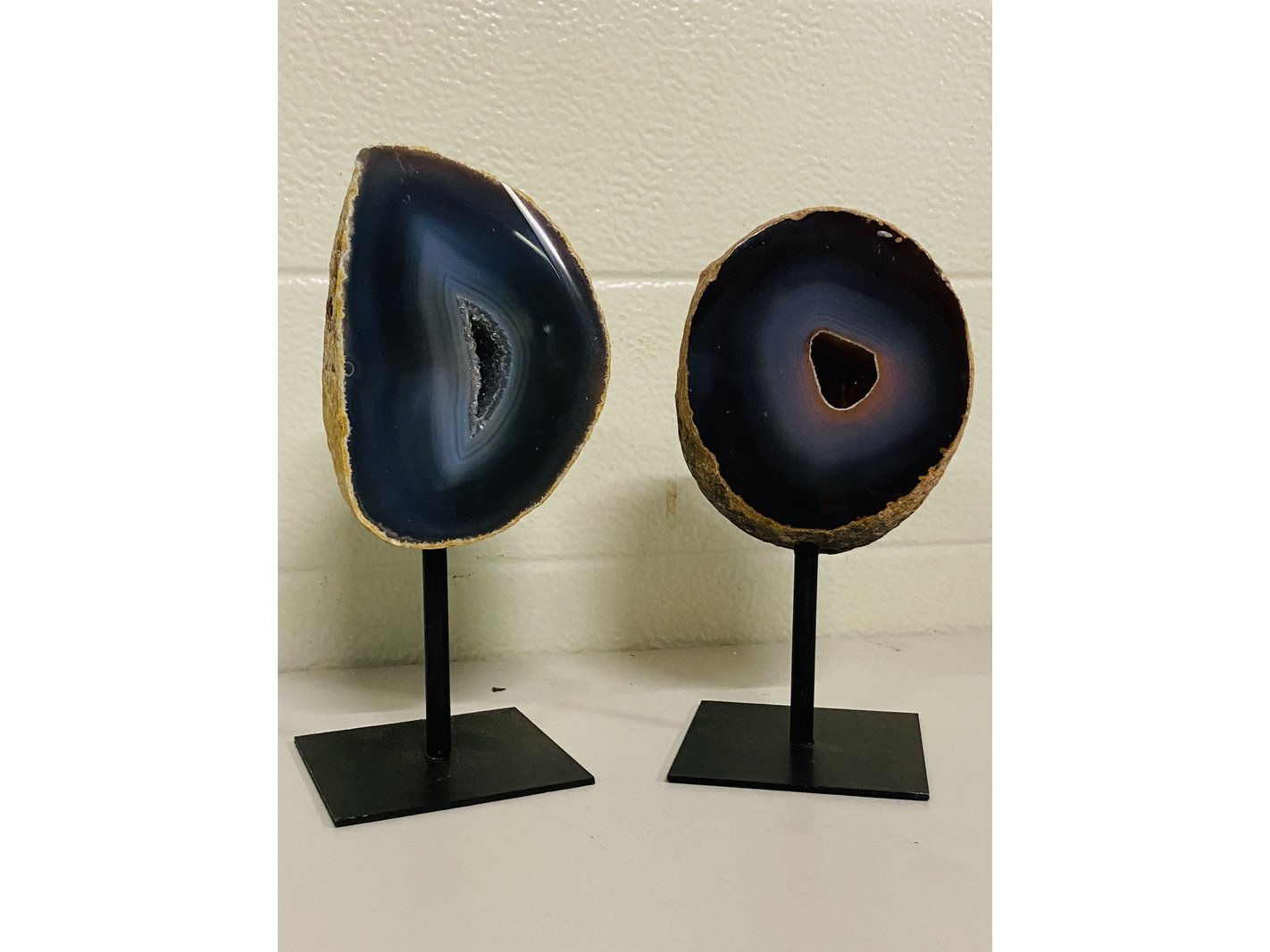 2x agaat/chalcedoon op standaard