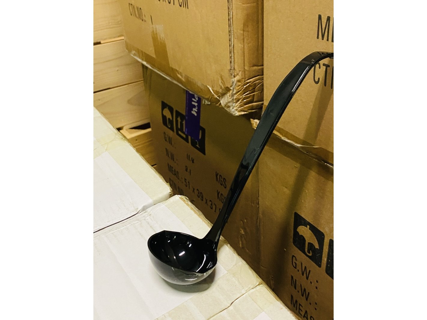 Product: luxe opscheplepel Kleur: Zwart Conditie: nieuw Specificaties: 36 dozen a 48 stuks opscheplepels, ideaal voor Catering of camping doeleinden. PS bestek is bestemd voor meermaals gebruik, in tegenstelling tot standaard wegwerpbestek.