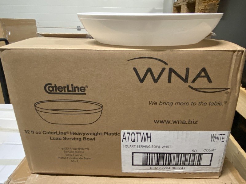 Product: luxe serveerschalen Kleur: Wit Afmeting: 945ml Conditie: nieuw Specificaties: 12 dozen a 50 stuks serveerschaal met 945ml. inhoud, ideaal voor Catering of camping doeleinden. PS bestek is bestemd voor meermaals gebruik, in tegenstelling tot standaard wegwerpbestek.