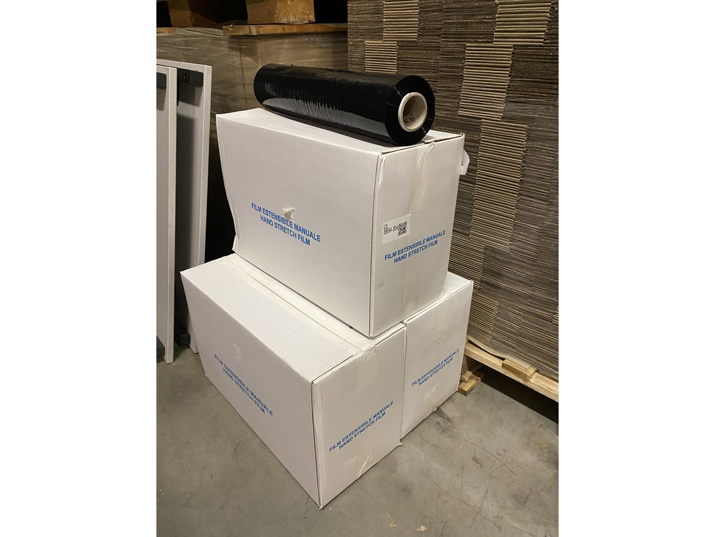 Product: Rollen handwikkelfolie Kleur: Zwart Afmeting: 50cm x 300m Conditie: nieuw Specificaties: 3 dozen a 6 rollen handwikkelfolie