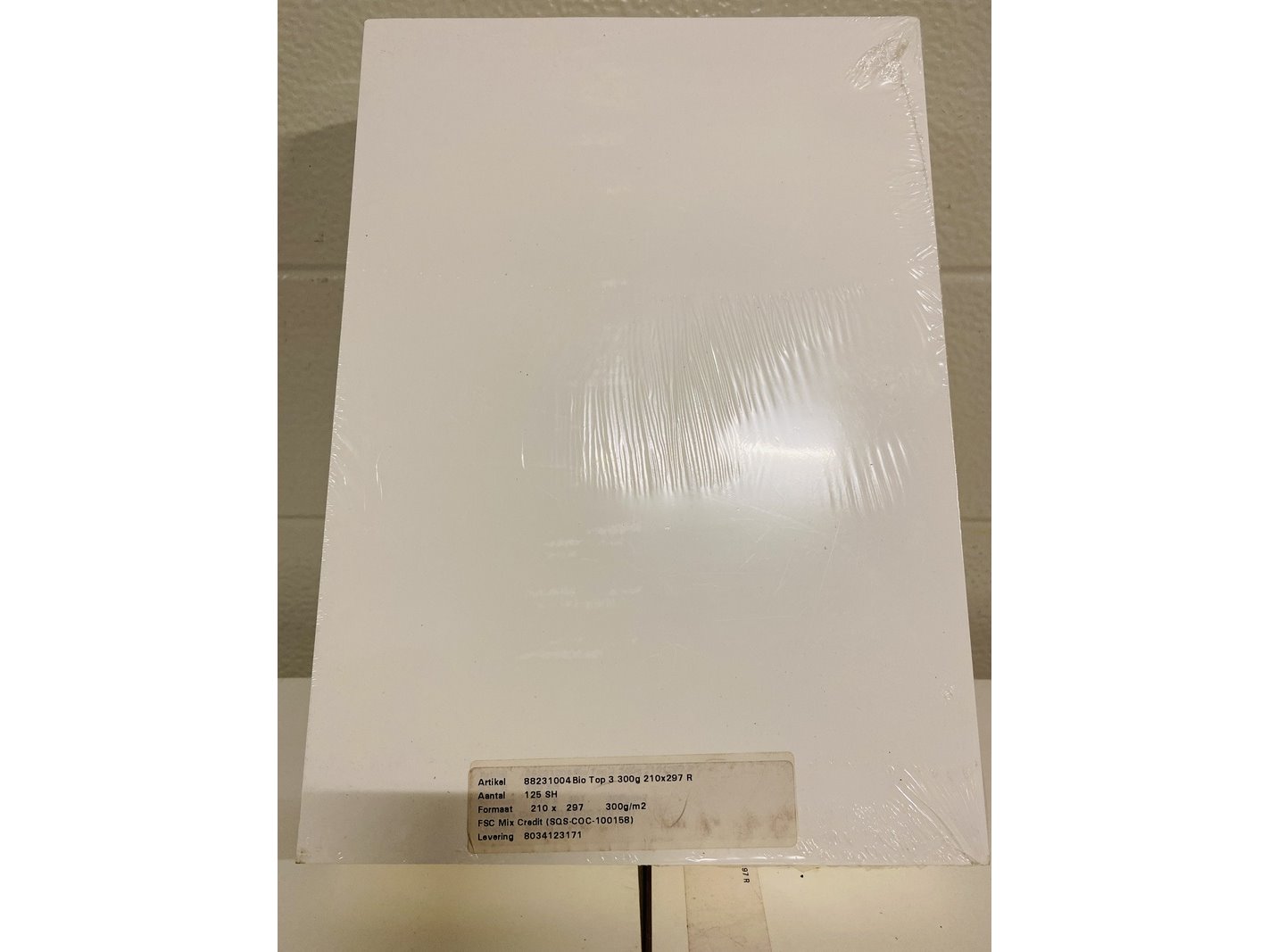 Merk: Bio Top 3 Product: pakken A4 papier 300 grams Materiaal: Papier Afmeting: 5 x 125 vel A4 / 300 grams Conditie: nieuw Specificaties: 5 pakken 300 grams Bio FSC Mix Credit A4 papier