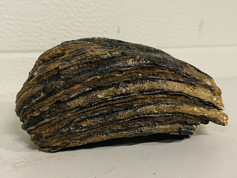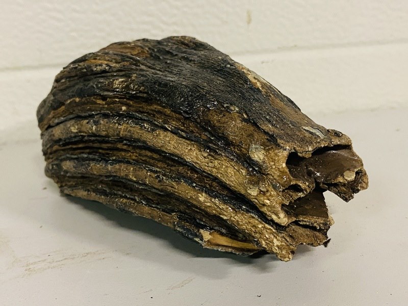 Product: Mammoetkies (Wolharige) Materiaal: Fossiel Afmeting: Lengte: ca 14 cm Conditie: nieuw Specificaties: Vindplaats: Przemysl, Polen / Pleistoceen tijdperk