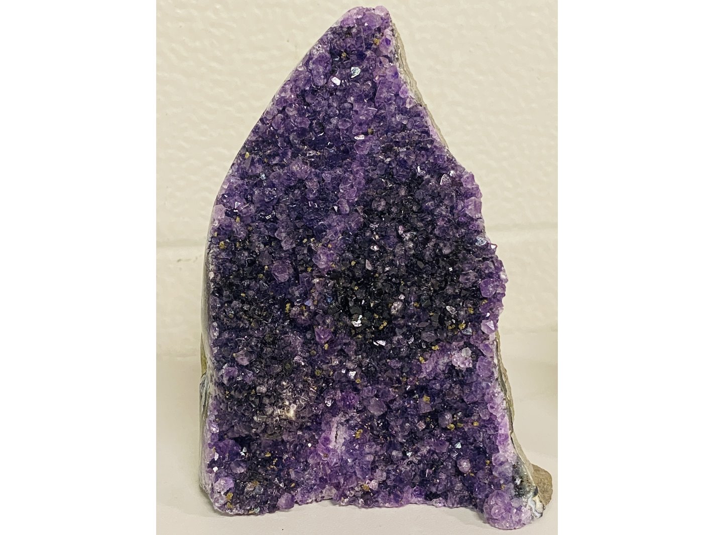 Product: Amethist staande druses Uruguay Kleur: Paars Materiaal: Edelsteen Afmeting: ca 2450 gram, 9 - 13 cm in hoogte Conditie: nieuw Specificaties: 3 Amethist druses uit Uruguay met een hoogte van ca. 9 - 13 cm
