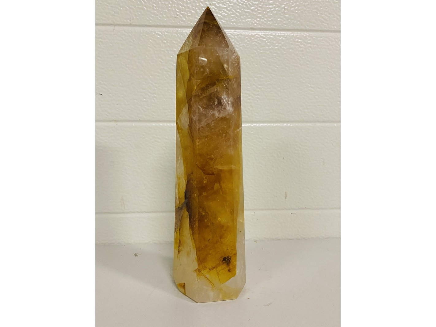 Product: Limoniet/Bergkristal obelisk XL Materiaal: Edelsteen Afmeting: ca 26 cm hoogte, ca 1674 gram Conditie: nieuw Specificaties: 1 obelisk (6-zijdig) van Limoniet/Bergkristal (Golden Healer).