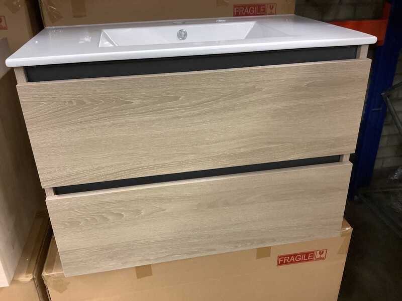 Merk: Karo Product: Badkamermeubel 80 cm + wastafel Kleur: walnut Materiaal: Mdf Afmeting: 80x46x56 cm Conditie: Nieuw Specificaties: Soft close lades. Zonder kraan