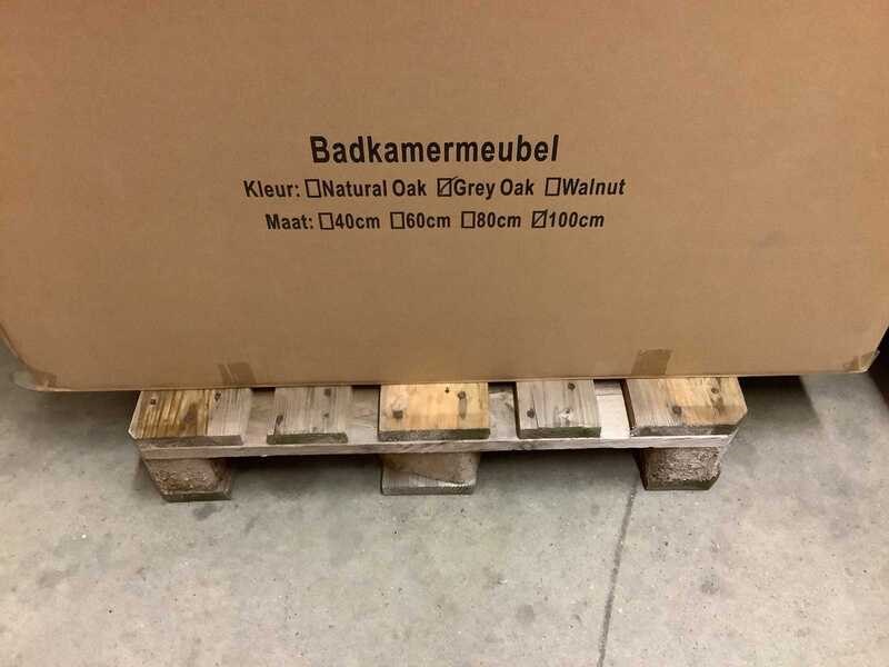 Merk: Karo Product: Badkamermeubel 100 cm + wastafel Kleur: grey oak Materiaal: Mdf Afmeting: 100x46x56 cm Conditie: Nieuw Specificaties: Soft close lades. Zonder kraan