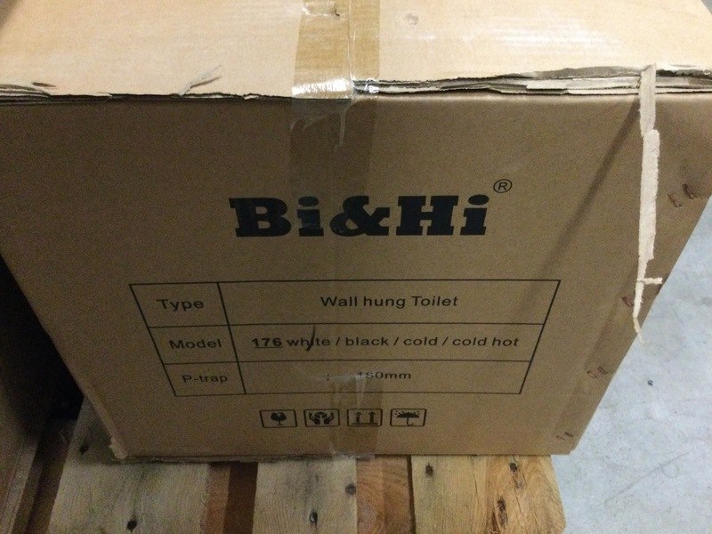 Merk: Bi & Hi Product: Hangtoilet met toiletbril Kleur: wit Conditie: Nieuw Specificaties: P-trap 180 mm