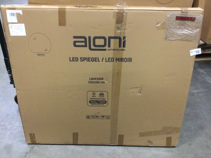 Merk: Aloni Product: Zonsopkomst Led spiegel met verwarming Afmeting: 120x100 cm Conditie: Nieuw Specificaties: Halfrond