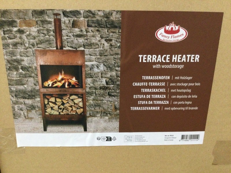 Merk: Esschert Design Product: Terraskachel roest met houtopslag Kleur: roest Afmeting: 38,4x136,3 cm Conditie: Nieuw