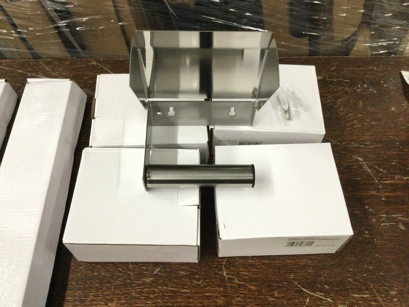 Product: 4x handdoekrek en 4x toiletrolhouder Kleur: chroom Conditie: Nieuw Specificaties: in doos