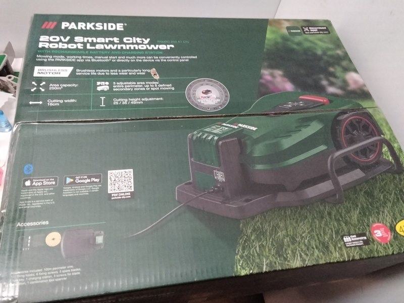 Merk: Parkside Product: Robot grasmaaier + accu en laadstation Conditie: Nieuw Specificaties: 20 V