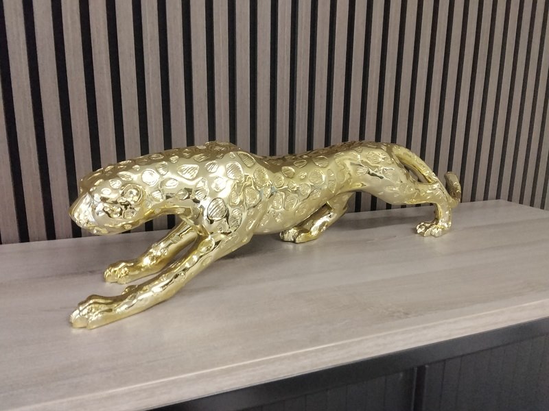 Product: XXL goudkleurig beeld van Jaguar Kleur: goud Afmeting: Afm. 75 cm. Conditie: Nieuw