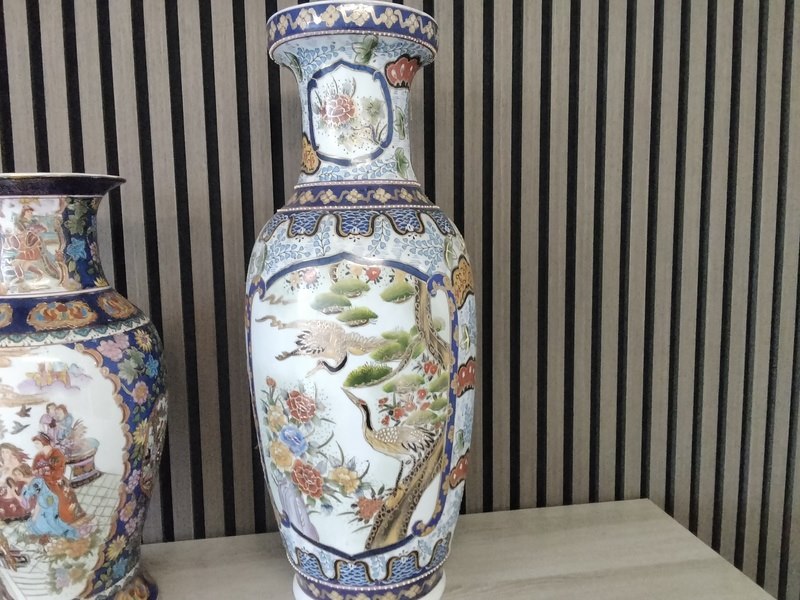 Product: Grote Chinese vazen Conditie: Nieuw Specificaties: Afm. 1x 46cm hoog, 22 cm breed. 1x 61 cm hoog, 25 cm breed.