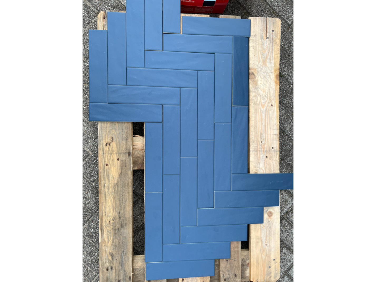 Product: Handvorm tegels blauw 1,08 m2 Conditie: Nieuw Specificaties: Keramische visgraat tegel in de kleur blauw met matte afwerking. Het formaat is 7,5×30 cm en de tegel heeft een dikte van 8,5 mm. Geschikt voor gebruik op wand en vloer in onder andere badkamer, keuken, toilet, hal en woonkamer. De tegel heeft antislipwaarde R9 en slijtgroep 4, waardoor deze geschikt is voor normaal tot intensief gebruik. Verpakt per doos van 48 stuks, goed voor 1,08 m2.