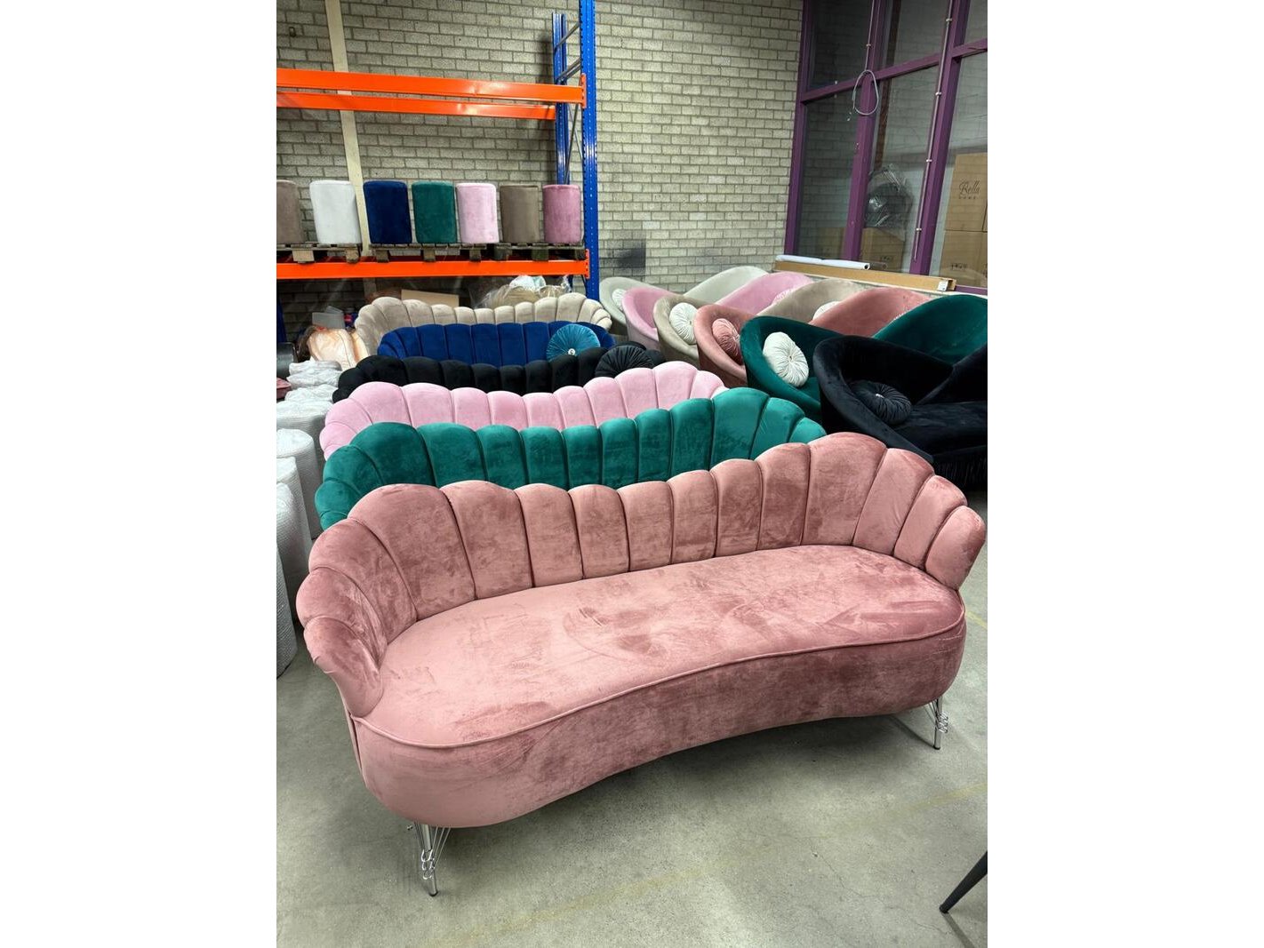 Roze bankje met zilveren poten