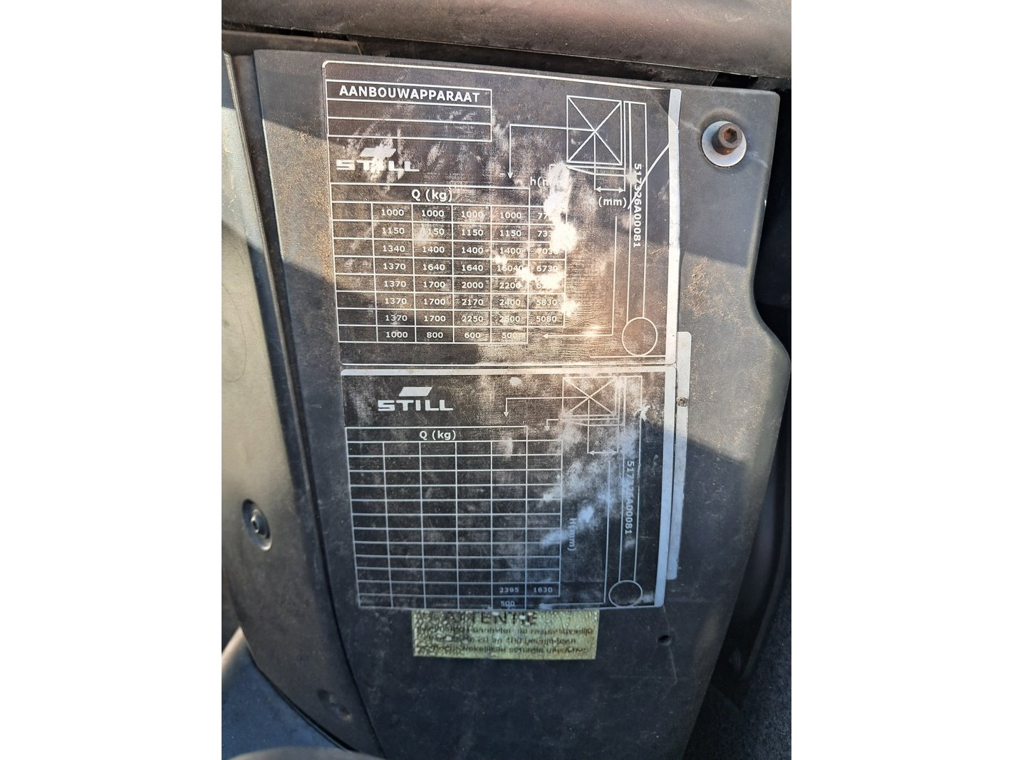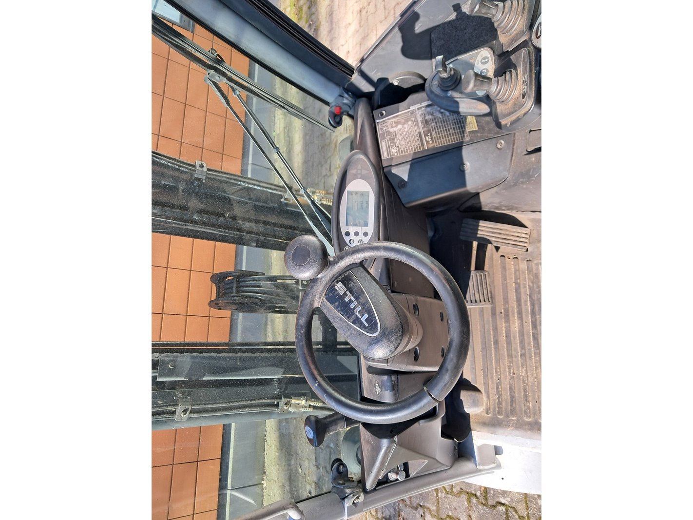 Merk: Still Product: Heftruck Kleur: Grijs / Oranje Materiaal: Metaal Afmeting: 2x3,5 meter BouwJaar: 2015 Conditie: Gebruikt Specificaties: Afgelezen urenstand: 10053 H Voorzien van: - Triplo mast 4.600mm - 2.500 KG hefvermogen - 4 functies - Volledige cabine - LPG met tankrekhouder Let op! Exclusief gas fles Deze kan wel gebruikt worden voor het opladen van de truck