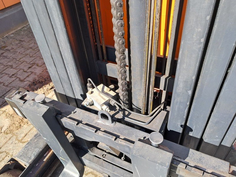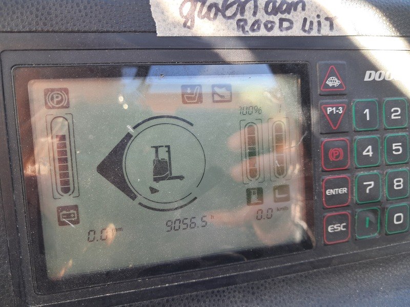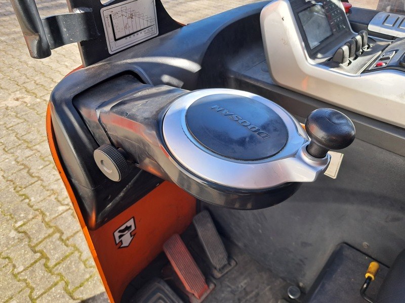 Merk: Doosan Product: Reachtruck Kleur: Oranje Materiaal: Metaal Afmeting: 2x2,5 meter BouwJaar: 2015 Conditie: Gebruikt Specificaties: Afgelezen urenstand: 9056 H Voorzien van: - Triplo mast 8,720mm - 1.600 KG hefvermogen - Elektrisch - Vinyl stoel - Camera - Joysticks - Side shift - Lader