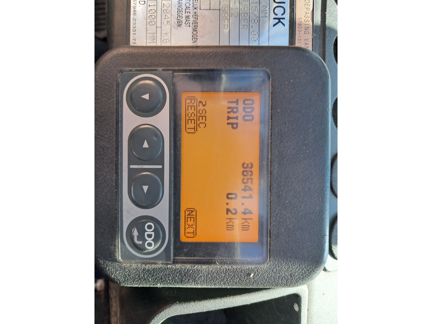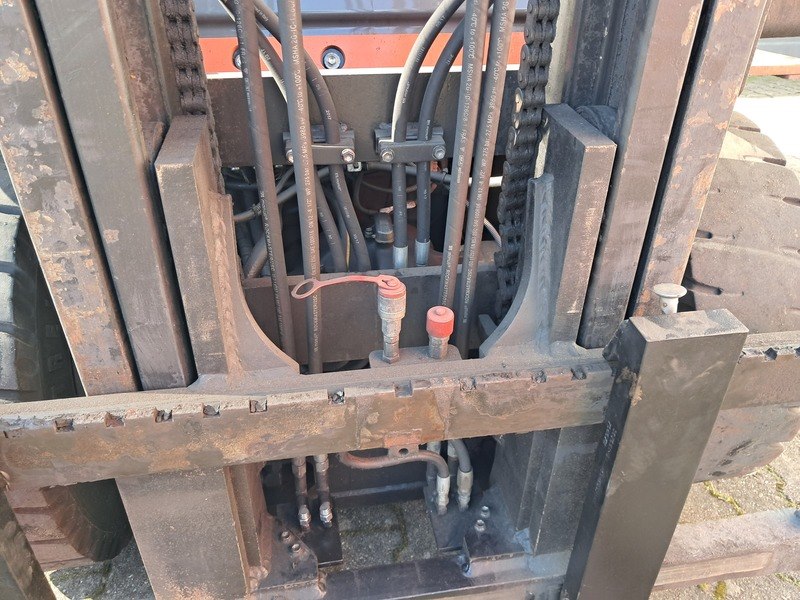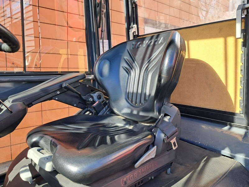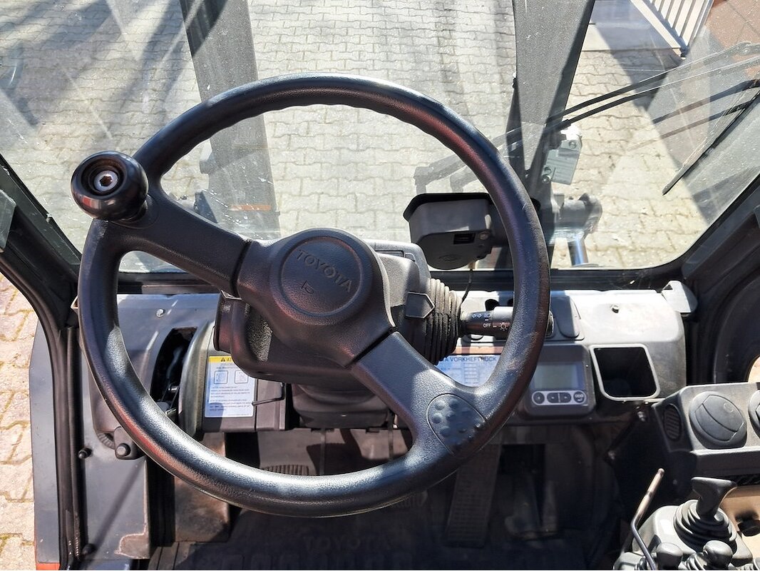 Merk: Toyota Product: Heftruck Kleur: Rood Materiaal: Metaal Afmeting: 2,5x4 meter BouwJaar: 2008 Conditie: Gebruikt Specificaties: Afgelezen urenstand: 12146 H Voorzien van: - Duplo mast 4.000 mm - 4.000 KG hefvermogen - LPG - Volledige cabine - 4 functies - Joysticks Let op! Exclusief gas fles Deze kan wel gebruikt worden voor het opladen van de truck