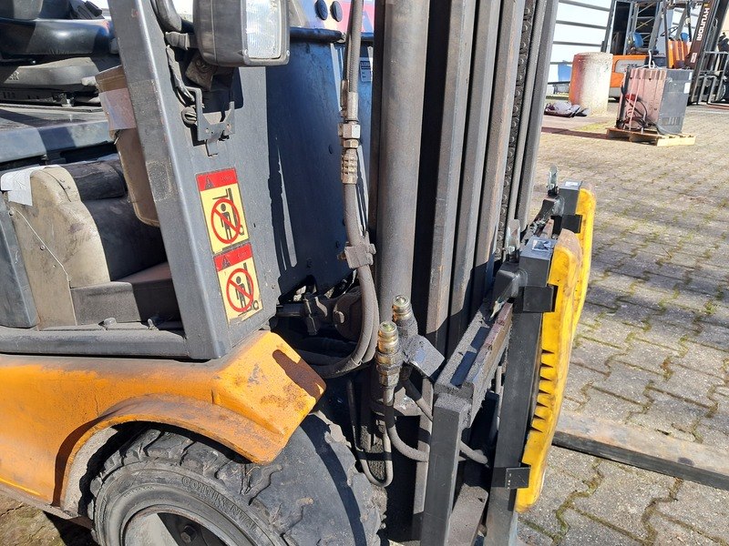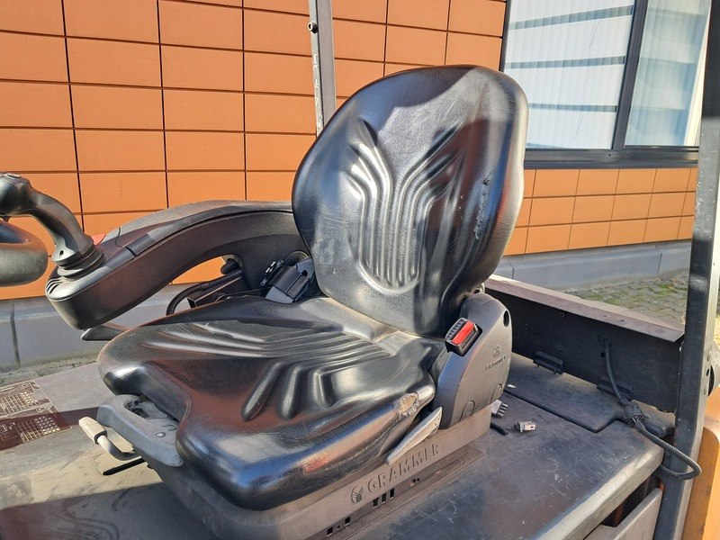 Merk: Still Product: Heftruck Kleur: Oranje Materiaal: Metaal Afmeting: 1,5x2,5 meter BouwJaar: 2004 Conditie: Gebruikt Specificaties: Afgelezen urenstand: 14442 H Voorzien van: - Triplo mast 4.500 mm - 2.000 KG hefvermogen - Elektrisch met lader - Side shift - Voorraam + dak - 3 functies - Volrubber banden