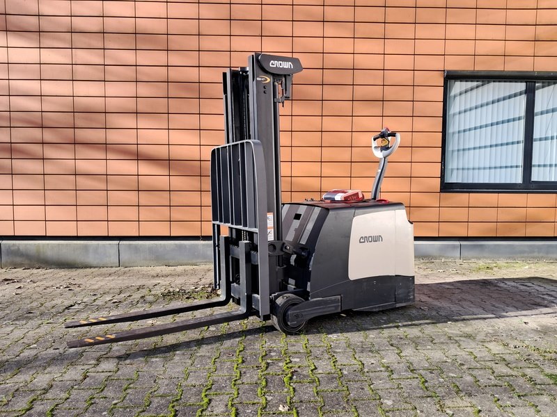 Merk: Crown Product: Stapelaar Kleur: Beige / Zwart Materiaal: Metaal Afmeting: 2x2,5 meter BouwJaar: 2022 Conditie: Gebruikt Specificaties: Afgelezen urenstand: 5500 H Vrijdragende stapelaar Voorzien van: - Triplo mast 4.365 mm hefhoogte - 1.400 KG hefvermogen - Kantelfunctie