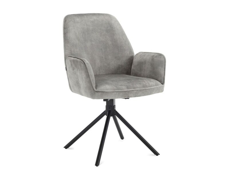 Product: Roterende eetkamerstoel Kleur: Clay Conditie: nieuw Specificaties: Breedte: 60cm Diepte: 64cm Hoogte: 88cm Armhoogte: 65cm Materiaal: Stof adore velvet en stalen poten